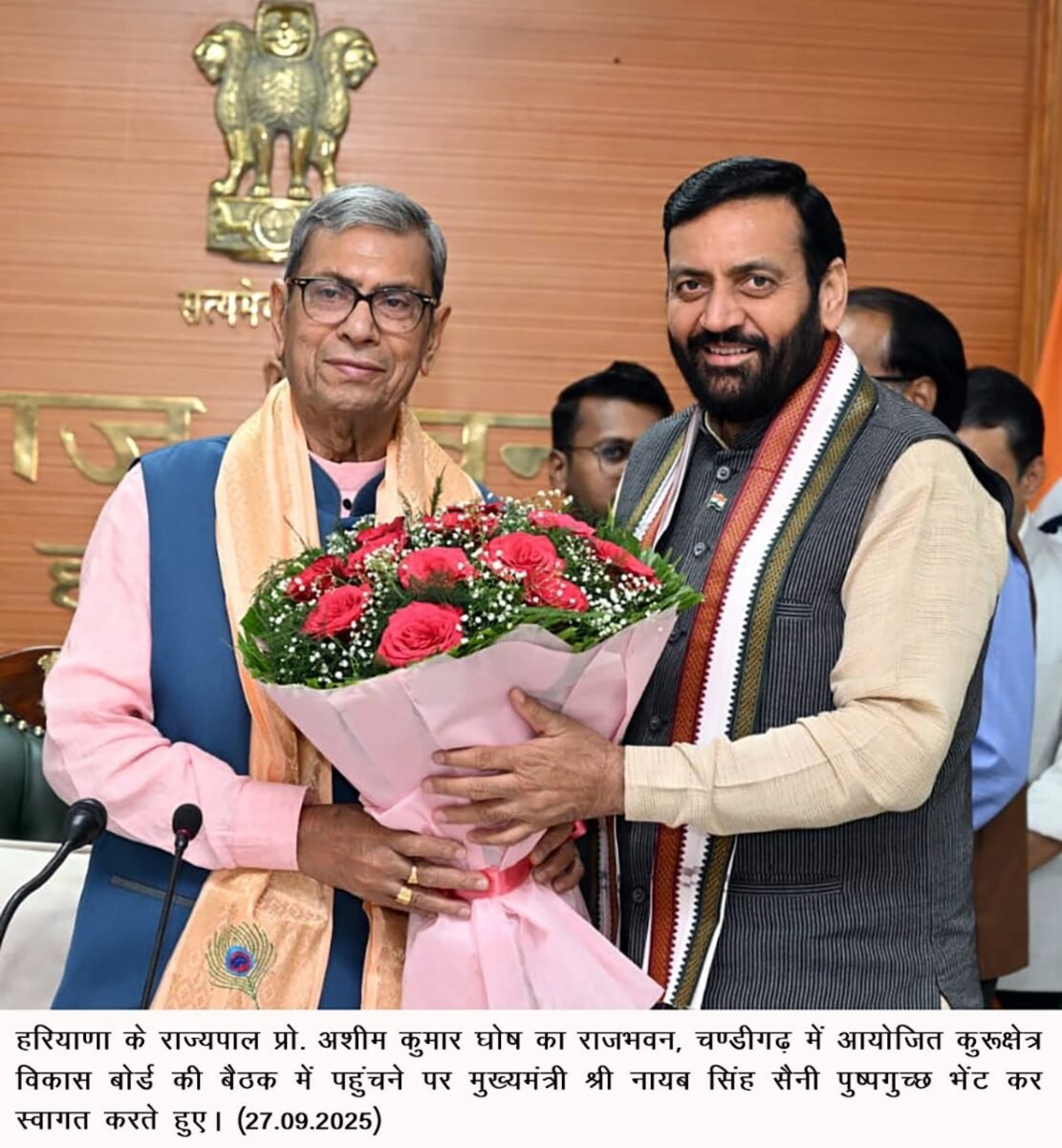 चंडीगढ़: हरियाणा के राज्यपाल प्रो. अशीम कुमार घोष ने अंतर्राष्ट्रीय गीता महोत्सव 2025 की तैयारियों की समीक्षा के लिए कुरुक्षेत्र विकास बोर्ड (केडीबी) की बैठक की अध्यक्षता की। बैठक में मुख्यमंत्री नायब सिंह सैनी, गीता मनीषी स्वामी ज्ञानानंद महाराज और सांसद नवीन जिंदल भी मौजूद रहे।