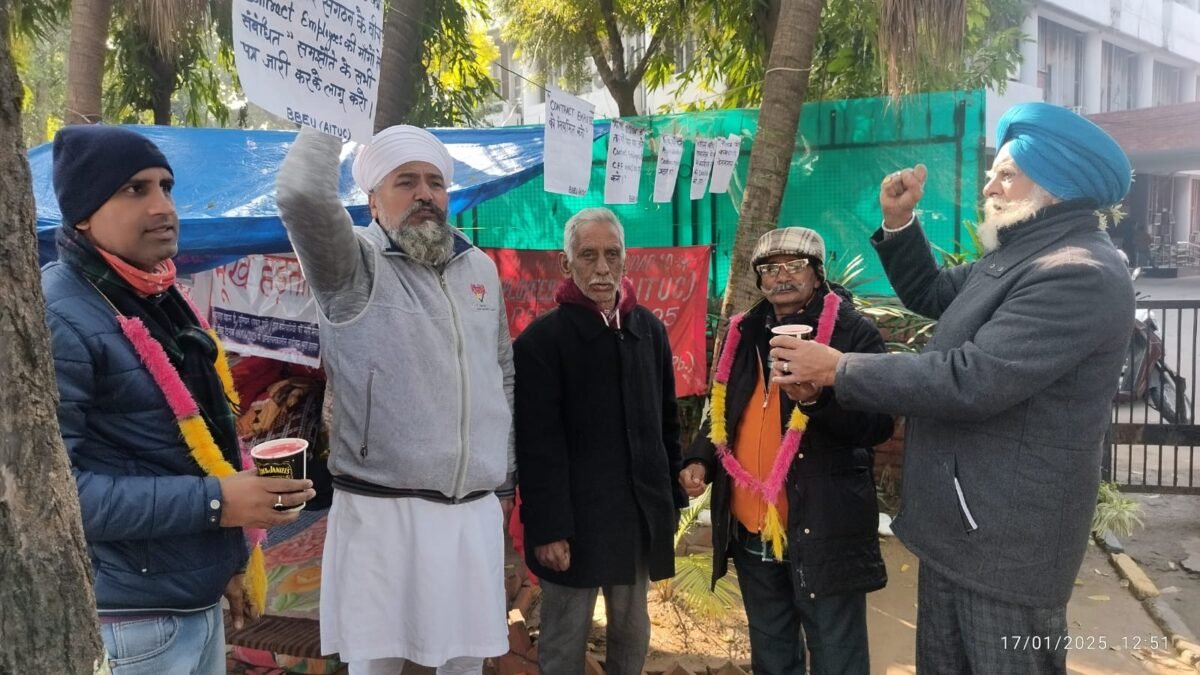 चण्डीगढ़ : भाखड़ा ब्यास इम्पलाईज यूनियन, एटक-ऐफी के द्वारा कर्मचारियों की लम्बित मांगों को लेकर बीबीएमबी मुख्यालय, सैक्टर 19 बी के समकक्ष चल रही क्रमिक भूख हड़ताल आज दसवें दिन में प्रवेश कर गई। यूनियन शाखा नंगल से हरवंत सिंह व सुशील कुमार को साथी अमित कुमार, प्रधान, नरेला यूनिट व साथी काबुल सिंह ने जूस पिलाकर उठाया और अगले 24 घंटे के लिए साथी योगेश पाल व साथी जयभगवान, नरेला यूनिट को हार पहना कर बैठाया। इस मौके पर भूख हड़ताल पर बैठाते हुए यूनियन के उपप्रधान स हरबंत सिंह बाबा ने अपने सम्बोधन में अध्यक्ष, बीबीएमबी से कर्मचारियों की मागों का जल्द हल करने हेतु अनुरोध किया और बोर्ड प्रसाशन की कर्मचारी मारु नितियों के खिलाफ नारेबाजी की गई।